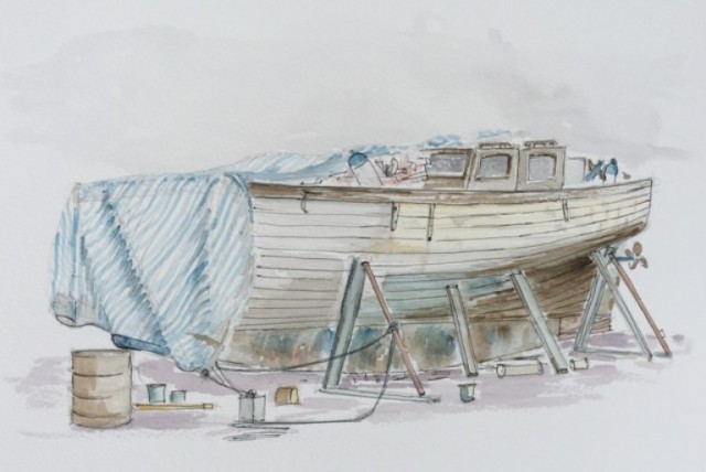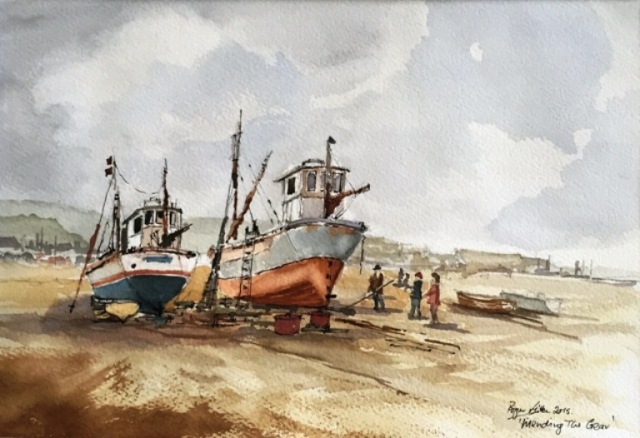 He prefers a broad choice of subjects including boats, harbours and estuaries as well as a variety of animals and even derelict tractors. He works mainly in watercolours but also likes conte pastel and pencil.